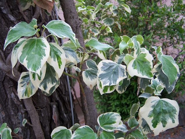 Arbusto o planta trepadora perenne de la familia de las Araliaceae y originaria de las Islas Canarias y del Norte de Africa, de ahí que se la conozca como hiedra canaria o hiedra matizada.