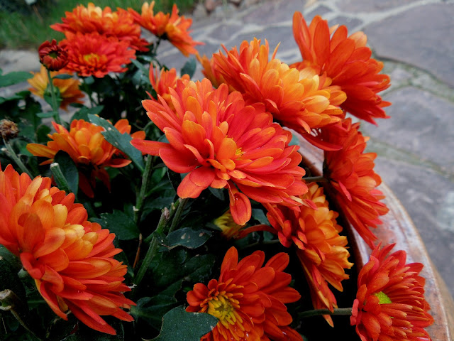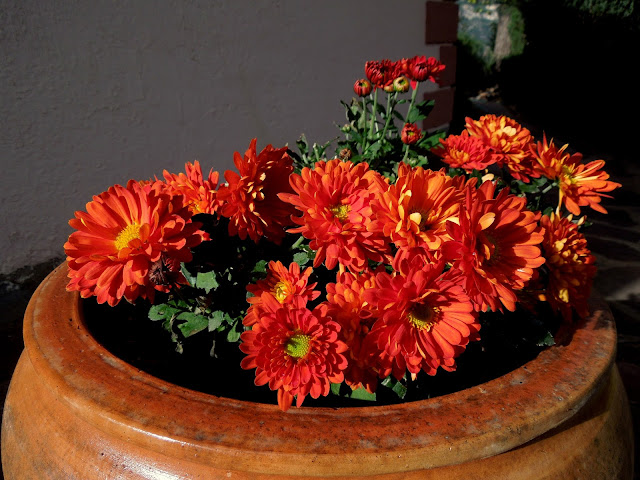 Ahora tengo crisantemos de color rojo ¡qué bien quedan en esta época en el jardín! así que no voy a preocuparme, me limitaré a disfrutar de ellos.