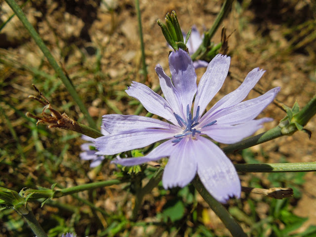 Los dos colores básicos, al igual que hace Pantone, son el "rosa quarzo" y el azul "serenity" que yo interpreto en mi rosal antiguo de flores rosa pálido y muy perfumadas de la primera fotografía y la Achicoria (Cichorium intybus) una flor silvestre con grandes propiedades medicinales.