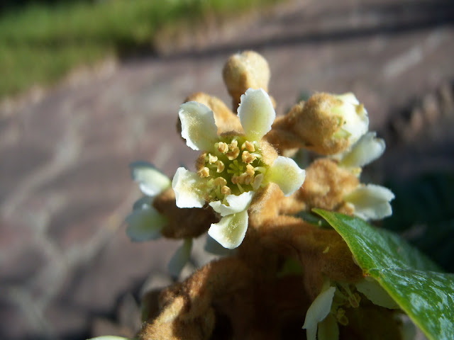 El níspero (Eriobotrya japonica) que precisamente en estos días está en plena floración, además de ser un árbol frutal y medicinal tiene unas flores muy perfumadas, su potente olor se utiliza en perfumería como esencia aportanto ese toque afrutado de fondo de algunos perfumes.