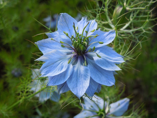 Seguimos con la segunda parte de las tendencias de color Primavera 2016 según Pantone Fashion Color Report, con otro tono azul pálido, el "Limpet Shell" que en mi jardín está representado por la Arañuela o Cabellos de Venus (Nigella damascena) una planta medicinal que crece libremente en Botánic Serrat.