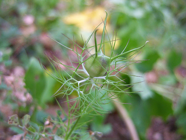 Así como la cápsula globosa del fruto en donde guarda las negras semillas que dan origen a su nombre Nigella.