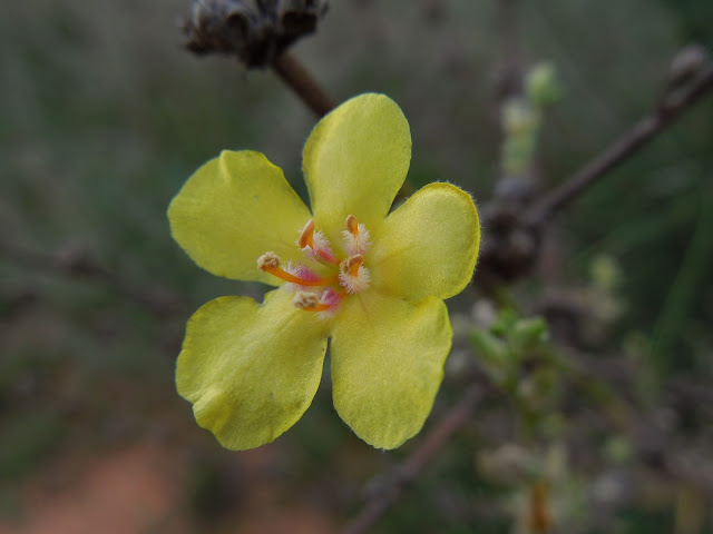 Esta es "La otra mirada de Botànic Serrat", esos cinco estambres de filamentos densamente cubiertos de pelos de color púrpura en toda su longitud, de la flor de candelera (Verbascum sinuatum L.)