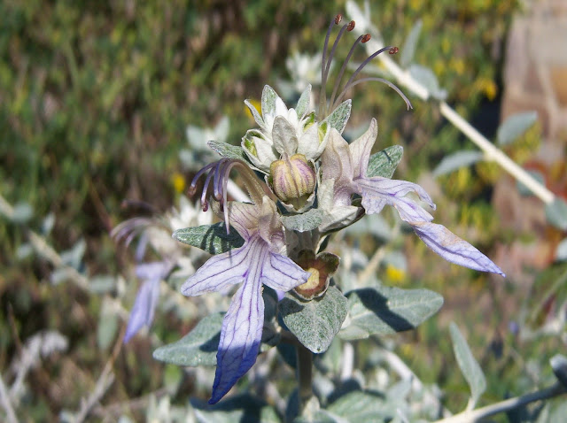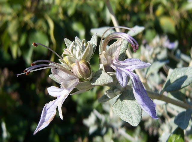 Ya había hablado de este arbusto grisáceo y perenne que es el llamado comunmente olivillo, olivilla, teucrio o salvia amarga (Treucrium fruticans) en otras ocasiones, pero es que a estas alturas ya apenas me quedan novedades por mostrar de la flora que compone mi jardín.