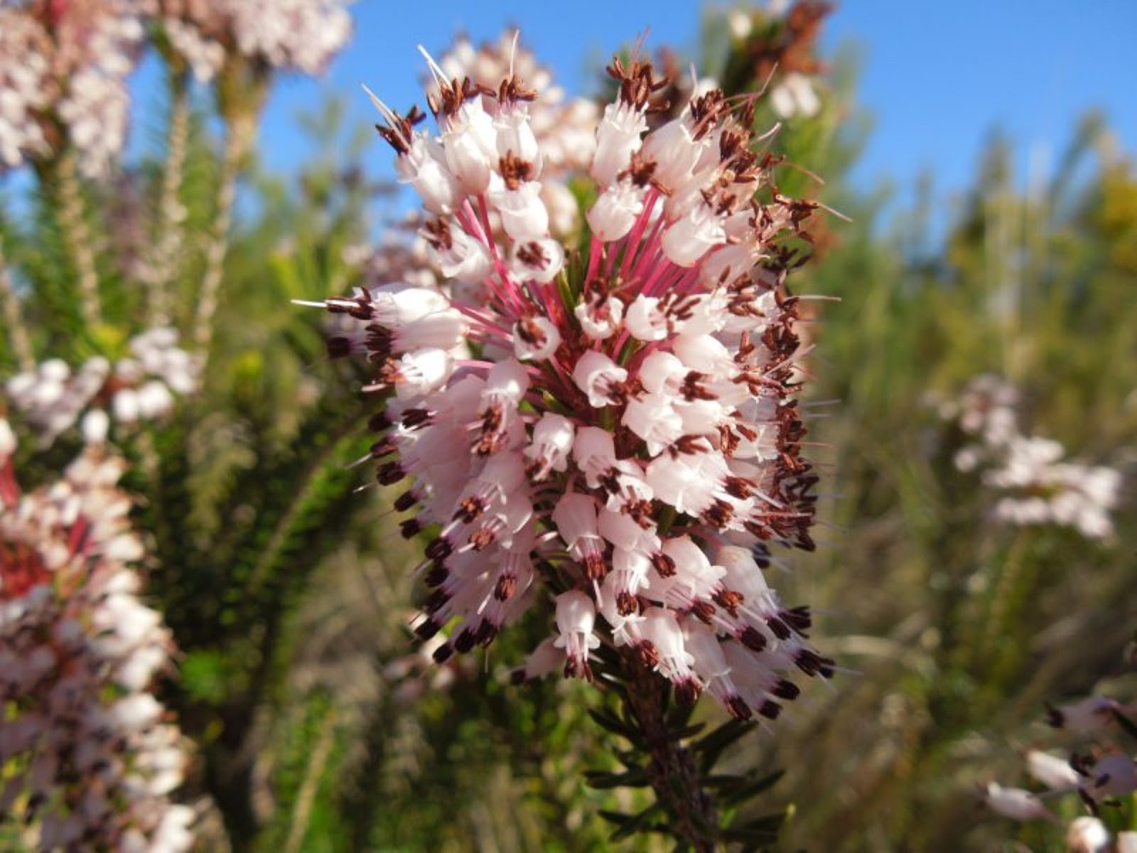 Flores hermafroditas y pentámeras, con depúnculos cortos. Cáliz de cinco sépalos ovados de color rosado o violáceo y estambres con filamentos ciliados.