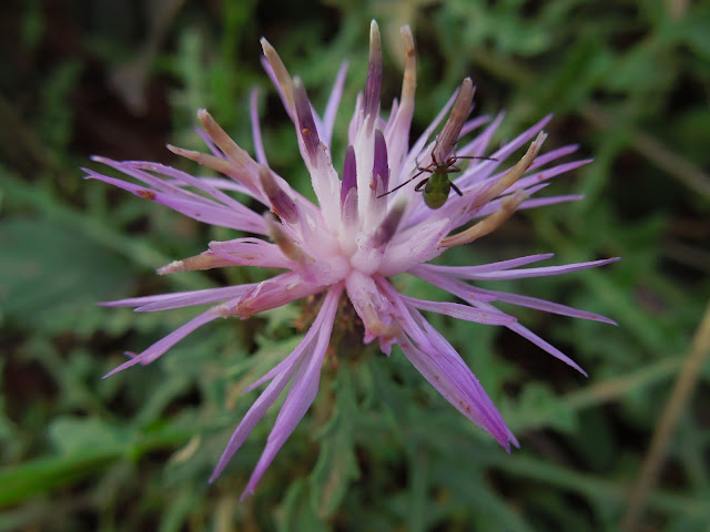 Esta planta herbácea de la familia de las Asteraceae, la Centaurea aspera L., de la que ya había hablado en otra ocasión, suele alargar la floración durante muchos meses más allá del otoño siempre que no haga frío intenso.