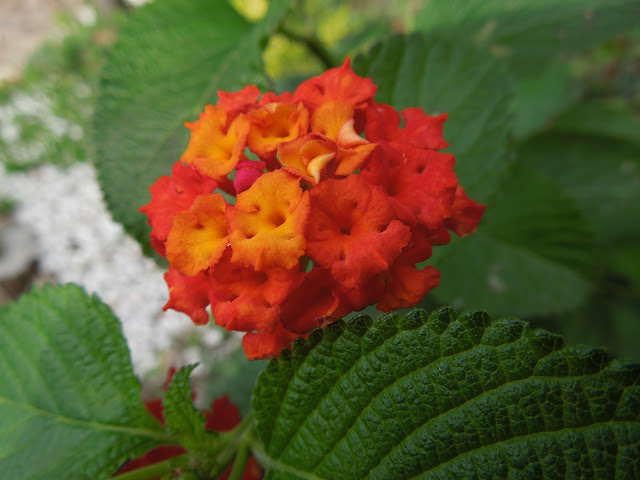 Una de las plantas ornamentales más comunes en España es la Lantana camara, ya sea en esta variedad que va del amarillo al rojo, llamada sanguinea o banderita española o en alguna otra.